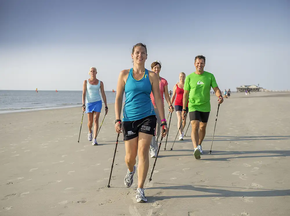 Eine Gesamtlänge von 66 Kilometern haben die 16 Strecken des Nordsee-Fitness-Parks in St. Peter-Ording, die durch alle vier Ortsteile führen. Die abwechslungsreichen Touren sind zwischen 1,2 und 14 Kilometern lang und eignen sich für Läufer, Jogger und Nordic Walker ebenso wie für Wanderer. Die ausgeschilderten Strecken führen durch alle drei Klimazonen des Ortes – Klimazone 3 im großen Waldgebiet, Klimazone 2 im Dünengebiet und Klimazone 1 in der Brandungszone. Diese Besonderheit erlaubt eine langsame Gewöhnung an das Reizklima der Nordsee.