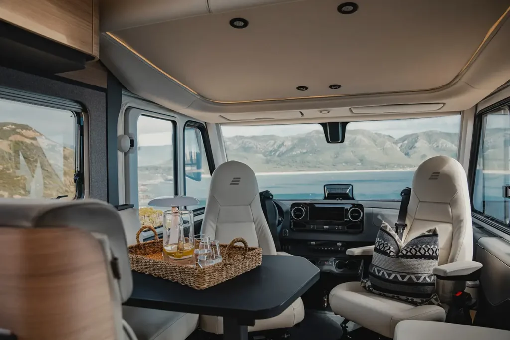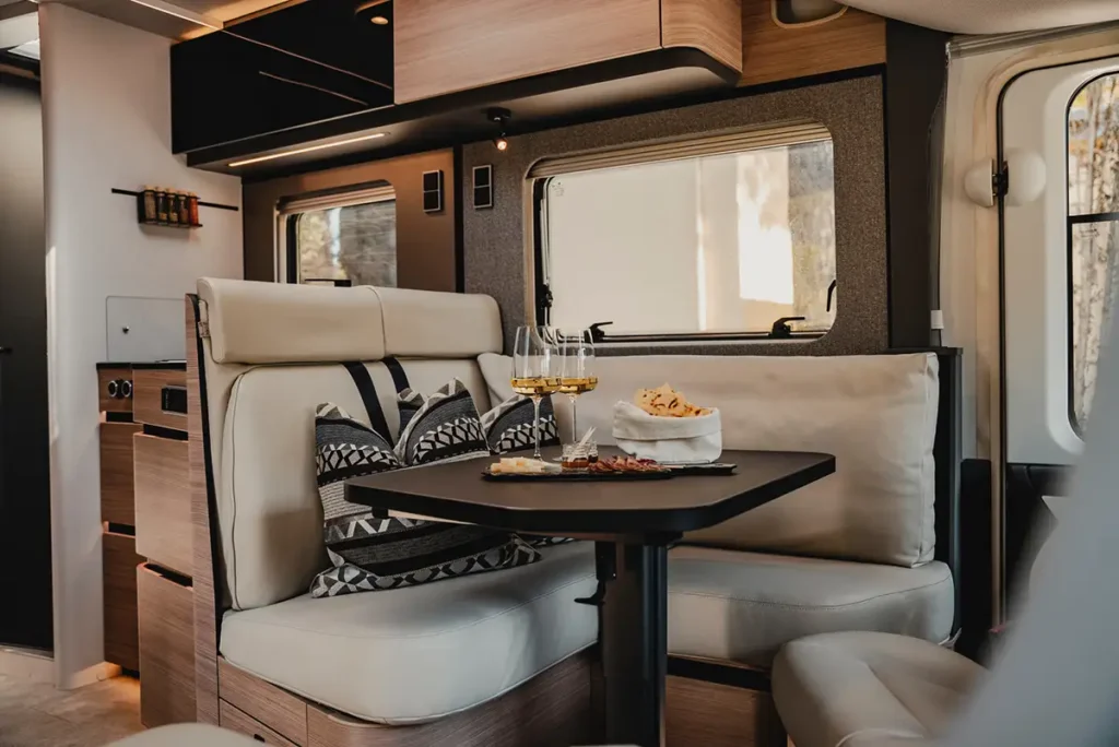 Ein integriertes Hub-Bett, flexible Stauraumlösungen und eine auf Funktionalität und Haptik ausgelegte Küche unterstreichen den ganzheitlichen Komfortansatz. Besonders hervorzuheben ist das Vier-Zonen-Lichtkonzept, das funktionale und atmosphärische Lichtquellen intelligent kombiniert – für stilvolle Akzente zu jeder Tageszeit.